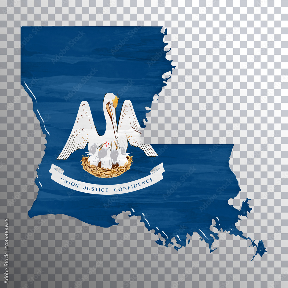 Louisiana flag and map, transparent background Stock Illustration