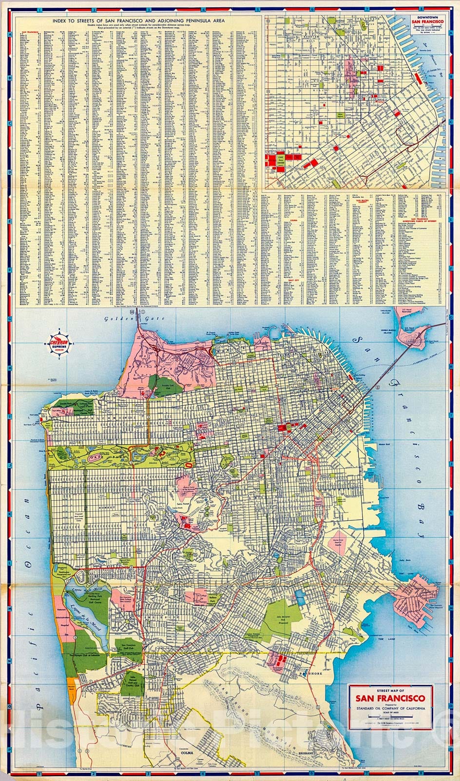 Historic Map : San Francisco street map., 1953, Vintage Wall Decor